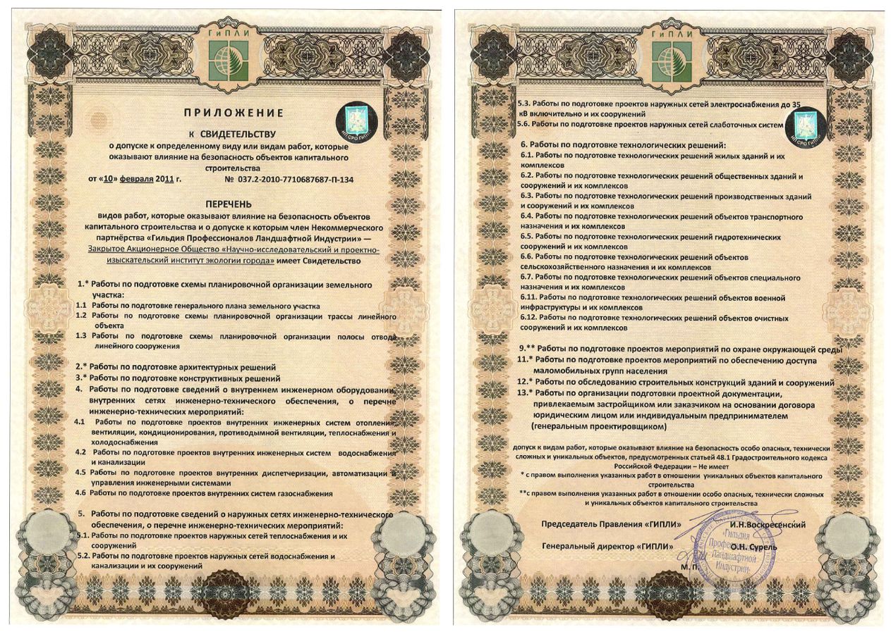 Удостоверяет, что система менеджмента качества применительно к техническим испытаниям и анализу в области прикладных эколого-аналитических исследований; проектно-изыскательской и научно-технической деятельности соответствует требованиям ГОСТ Р ИСО 9001-2001 (ИСО 9001:2000).Выдан: Закрытому акционерному обществу «Научно-исследовательский и проектно-изыскательский институт экологии города».Срок действия: до 6 марта 2011 г.